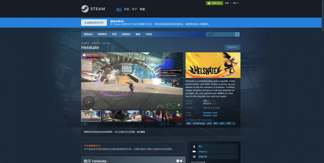 《Helskate》是Phantom Coast制作并发行的一款动作冒险类游戏,而这款游戏的下载网址就是购买平台的购买页面,比如Steam版就是在购买页面购买之后,点击页面中的马上开玩就可以开始下载了。
