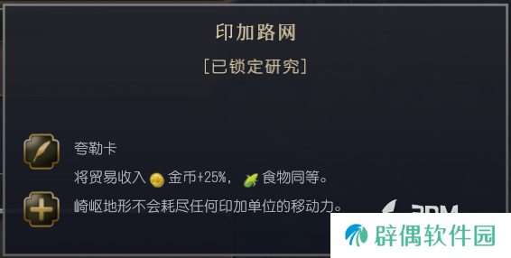1级:椅岖地形不会耗尽任何印加单位的移动力。解锁“夸勒卡”传统。