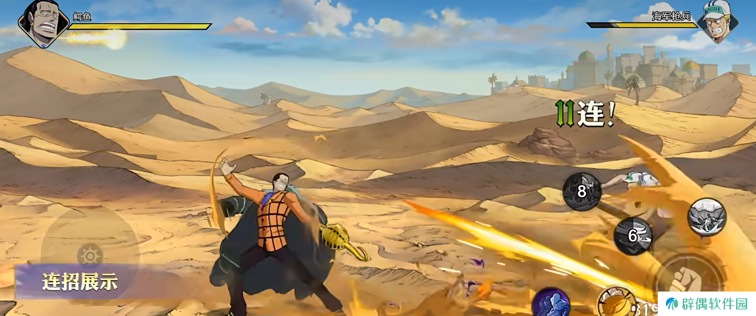 首先登场的是海军英雄戈普,他的坚毅与力量令人敬仰。戈普的被动技“海军英雄”赋予他在普攻任意一段前摇期间通过轻点或松开普攻键,将这一段转化为终结攻击的能力。这意味着他可以在战斗中灵活应对,打出连绵不断的高伤害。而每次使用不同的终结攻击时,还可积累[气势],增强铁拳技能的威力。