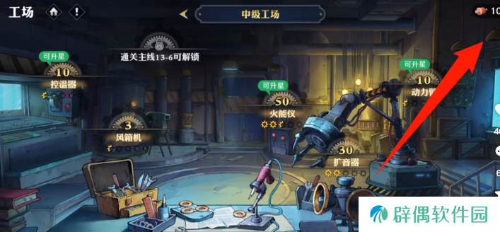工场:这是体力唯一的消耗途径,玩家来到工场扫荡之后就可以获得升级所需要的材料,解锁更多的玩法。