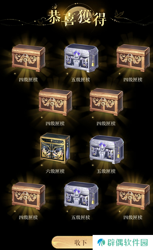 打每个场景图获取的道具要在匣器作拆卸与鉴别处鉴定,除了神秘匣椟以外所有的1~3级匣椟,都可以拆解并且获得箱子里面的奖励。神秘匣椟与精密神秘匣椟可以鉴别出4~6级的匣椟,拆解这些高级匣椟,有几率获得笼雀。