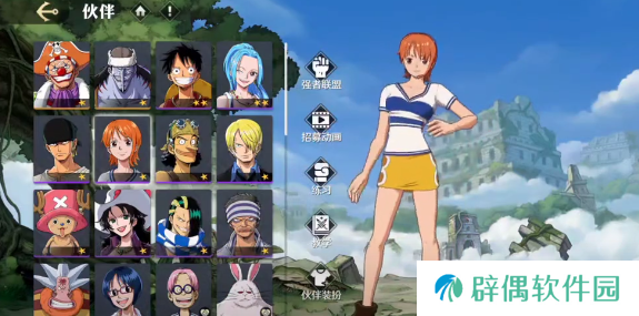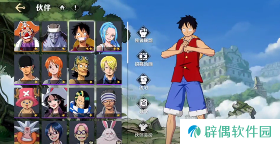 路飞:在新手招募活动中就会出现,是一个主角能够激励队友,拥有出色的近战输出能力。橡胶机关枪还可以快速的清理杂兵,拥有良好的机动性,还有躲避能力,可以迅速的提升生存能力。