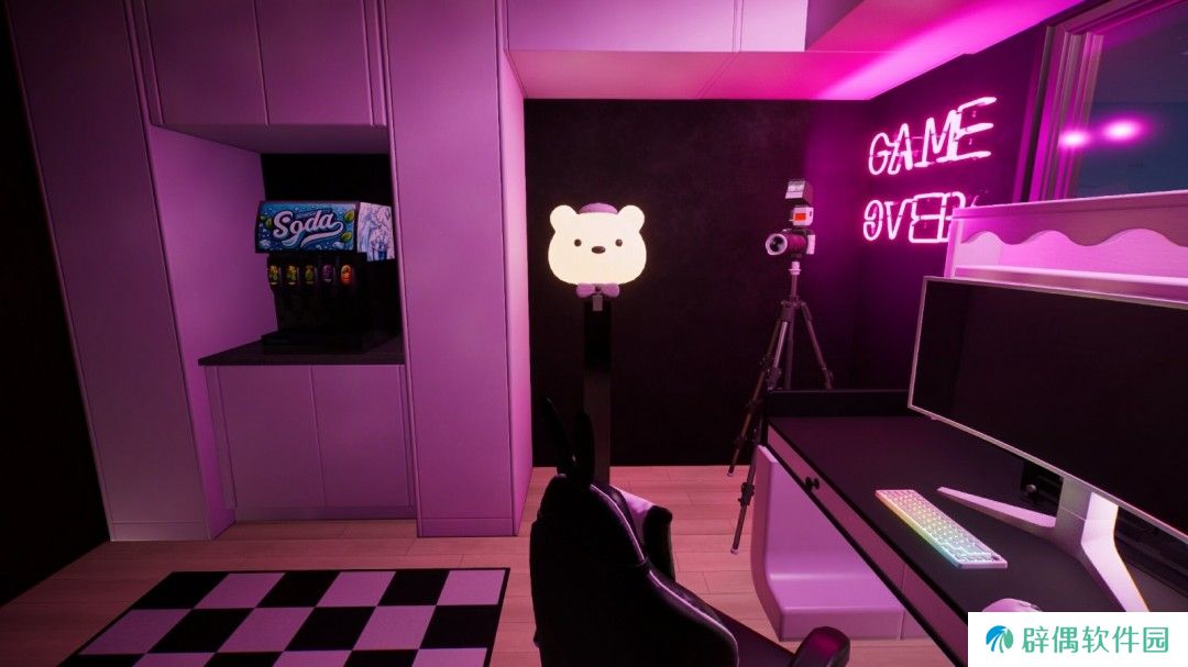 《inZOI》中的建筑系统是游戏里比较特殊的系统,玩家可以根据自己的要求造成自己想要的房间,粉色游戏室的房间就是很多玩家比较喜欢的,这个房间看起来还是很可以的,氛围灯为粉色,还有高配的电脑。